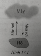 Sơ đồ hình 17.1 được gọi là vòng tuần hoàn nước. Hơi nước từ hồ bốc lên cao ngưng kết tạo thành mây, gặp điều kiện thuận lợi gây mưa, rơi xuống hồ đã tạo nên một vòng tuần hoàn khép kín của nước.