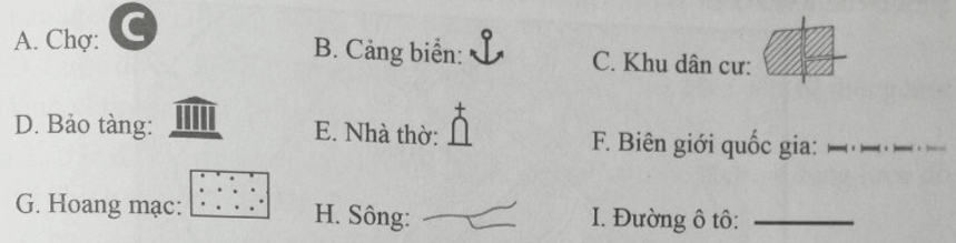 Câu 7 trang 51 sách bài tập Địa Lí lớp 6: Cho các kí hiệu sau: