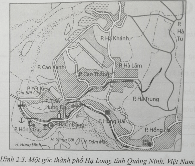 Để đọc được các đối tượng địa lí thể hiện trên bản đồ hình 2.3 thì bảng chú giải phải thể hiện được những đối tượng nào? Cần sử dụng các loại và các dạng kí hiệu nào? Cho ví dụ.