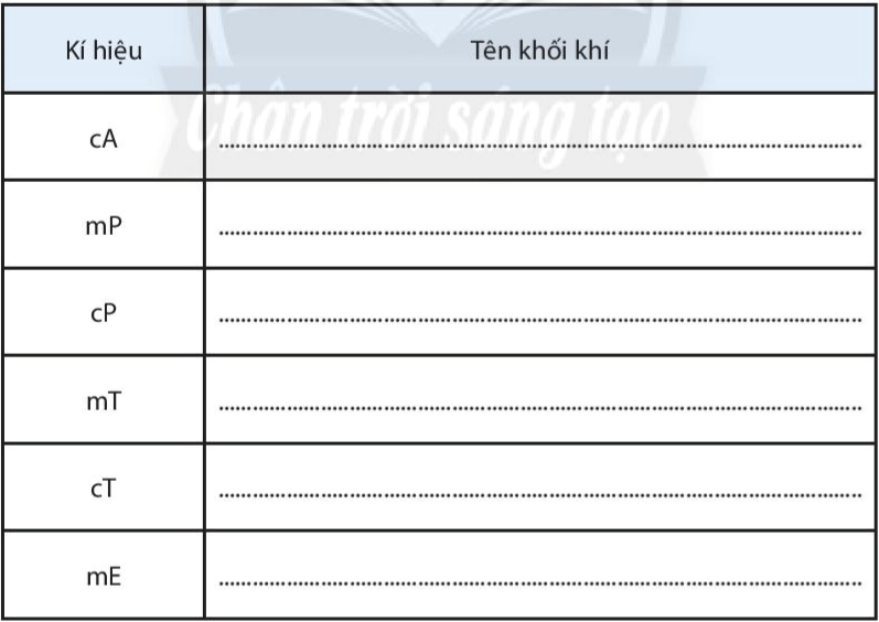 1. Ghi tên các khối khí: