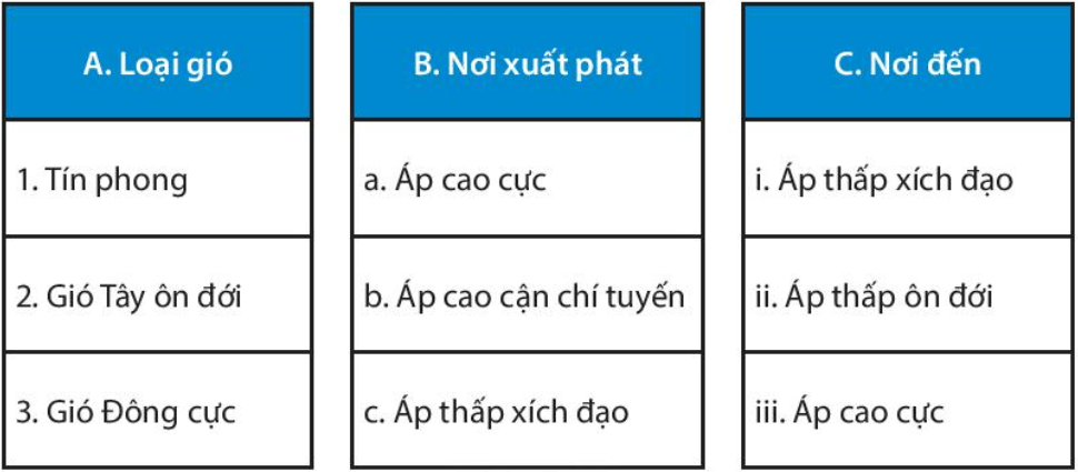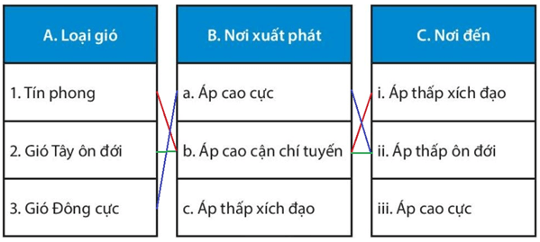 1. Hãy nối từng ý ở cột A với các ý ở cột B, C sao cho phù hợp.