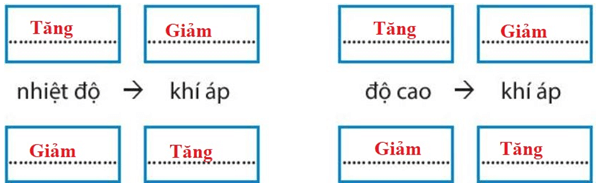 2. Biết rằng khí áp thay đổi tỉ lệ nghịch với nhiệt độ và độ cao, em hãy điền chữ “tăng” và “giảm” vào các ô trống cho phù hợp: