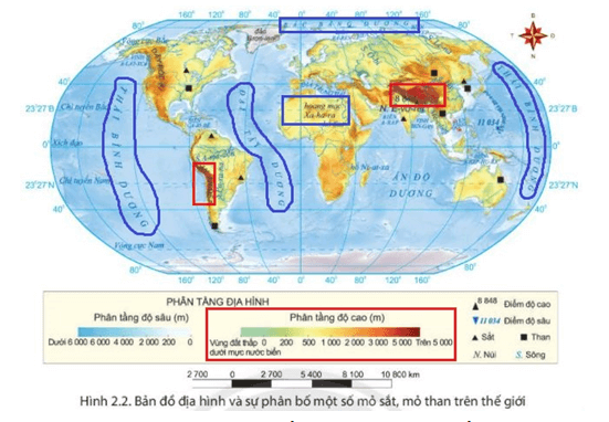 2. Những khu vực địa hình có độ cao từ 5000 m trở lên là Tây Á (dãy Hi-ma-lay-a), Tây Nam Mĩ (dãy An-đét).