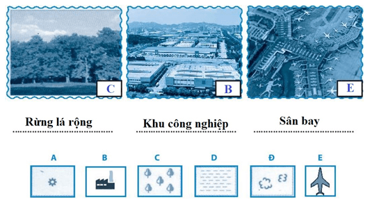 b. Hình ảnh của hạt cà phê trên bản đồ thể hiện khu vực trồng cây cà phê, hình ảnh chiếc máy bay thể hiện vị trí của sân bay,... Các đối tượng này được gọi là kí hiệu tượng hình/kí hiệu hình học.