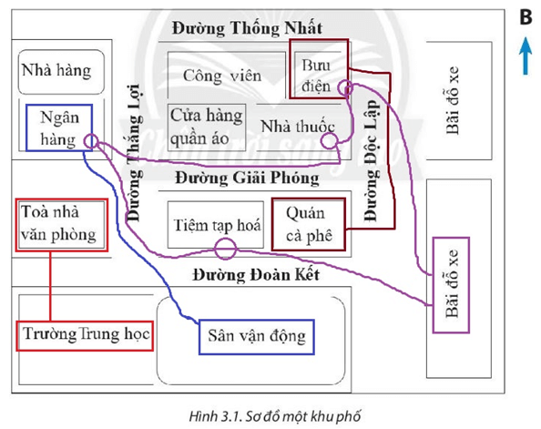 2. Em cần đi từ sân vận động đến ngân hàng. Đường Thắng Lợi đi ngắn nhất.