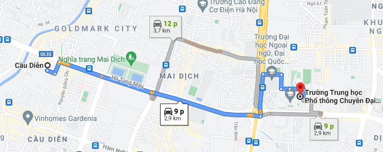 Điểm đến: Trường THPT Chuyên ĐH Sư Phạm, 136 Xuân Thủy – Cầu Giấy – Hà Nội.