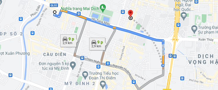 Phương tiện di chuyển: Di chuyển bằng xe máy, đi thẳng đường Cầu Diễn, tiếp đường Hồ Tùng Mậu, điểm cuối là đường số 136 Xuân Thủy.