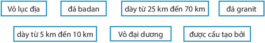 Câu 2 trang 31 sách bài tập Địa Lí 6: Từ các ô bên dưới, đặt hai câu có ý nghĩa về vỏ lục địa và vỏ đại dương.