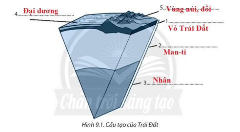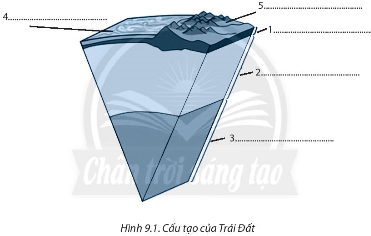 Câu 1 trang 31 sách bài tập Địa Lí 6: Điền những thông tin tương ứng với cấu tạo Trái Đất được thể hiện trong hình 9.1: