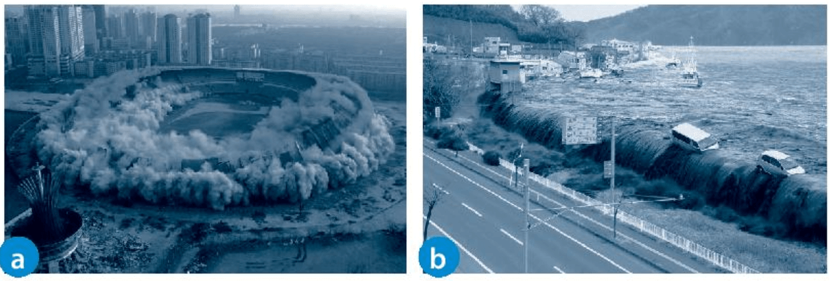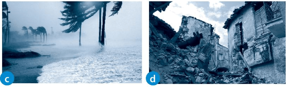 Câu 5 trang 32 sách bài tập Địa Lí 6: Hình nào sau đây thể hiện hậu quả của động đất? Dựa vào dấu hiệu nào em đưa ra nhận định đó?