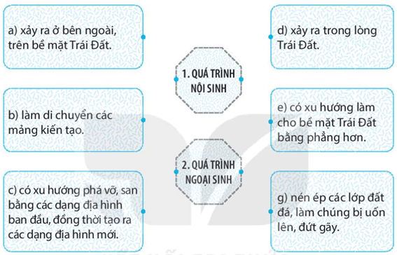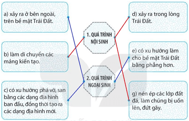 Câu 4 trang 26 sách bài tập Địa Lí lớp 6: Hãy nêu sự khác nhau giữa quá trình nội sinh và quá trình ngoại sinh.
