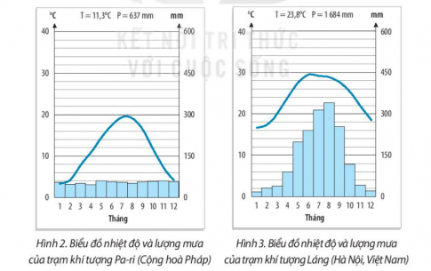 Bài tập 2: Dựa vào biểu đồ dưới đây, nêu sự khác biệt về nhiệt độ và lượng mưa của hai trạm khí tượng Pa-ri và Láng.