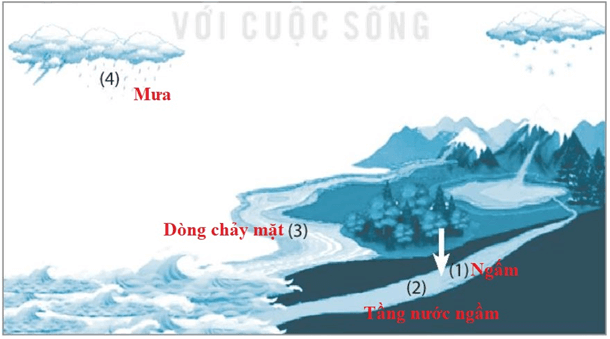 “tầng nước ngầm, ngấm, mưa, dòng chảy mặt”.