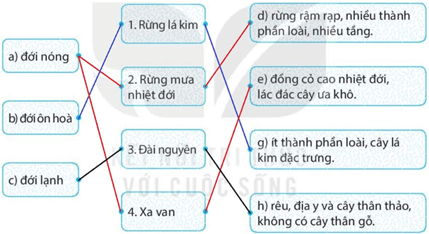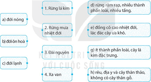 Câu 3 trang 56 sách bài tập Địa Lí lớp 6: Ghép các ô bên trái và bên phải với ô ở giữa sao cho phù hợp.