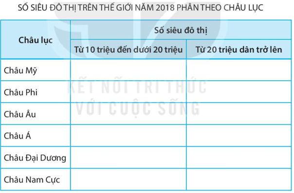 - Châu Đại Dương và châu Nam Cực không có siêu đô thị nào.