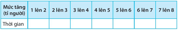 Nêu nhận xét về quãng thời gian mỗi lần dân số tăng gấp đôi.
