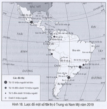 b) Nhận xét về sự phân bố các đô thị ở Trung và Nam Mỹ.