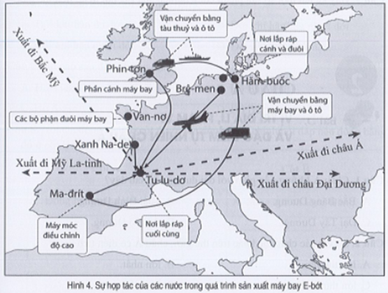Hãy viết cảm nghĩ của em về sự hợp tác của các nước thông qua quá trình sản xuất máy bay E-bớt.