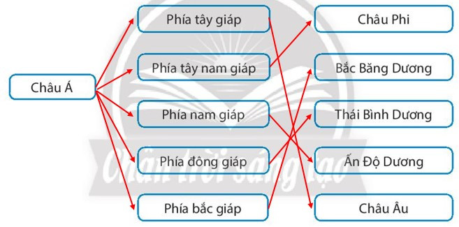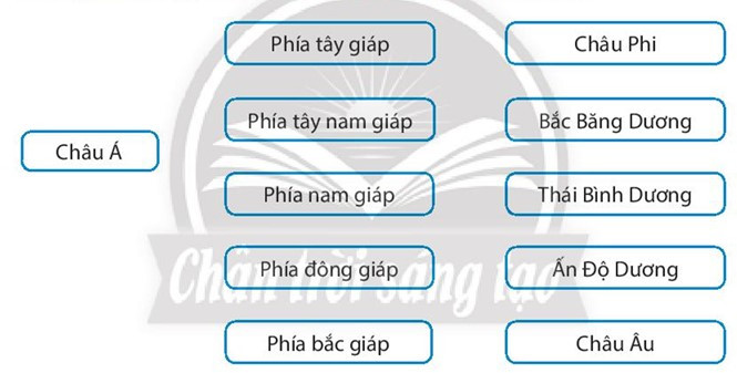 Bài tập 2 trang 23 SBT Địa lí 7: Hãy nối thông tin trong các cột dưới đây cho phù hợp để thể hiện vị trí địa lí tiếp giáp của châu Á với các châu lục, đại dương.