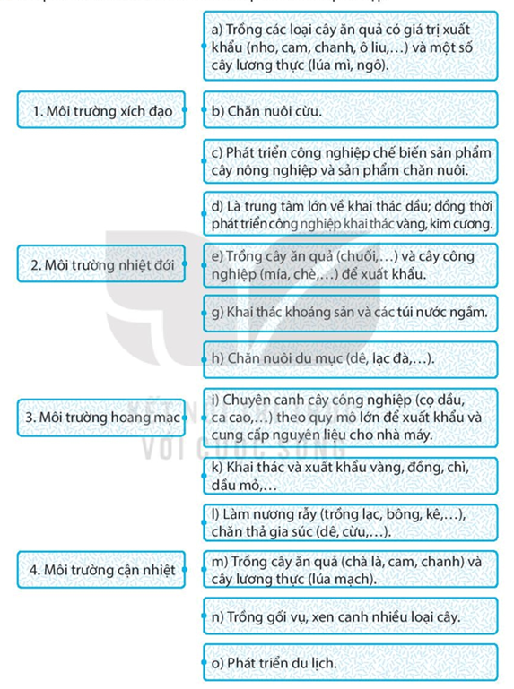 Bài tập 3 trang 40 SBT Địa lí 7: Ghép các ô ở bên trái với các ô ở bên phải sao cho phù hợp.