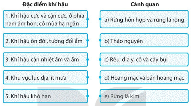 Bài tập 7 trang 45 SBT Địa lí 7: Ghép các ô ở bên trái với các ô ở bên phải sao cho phù hợp.