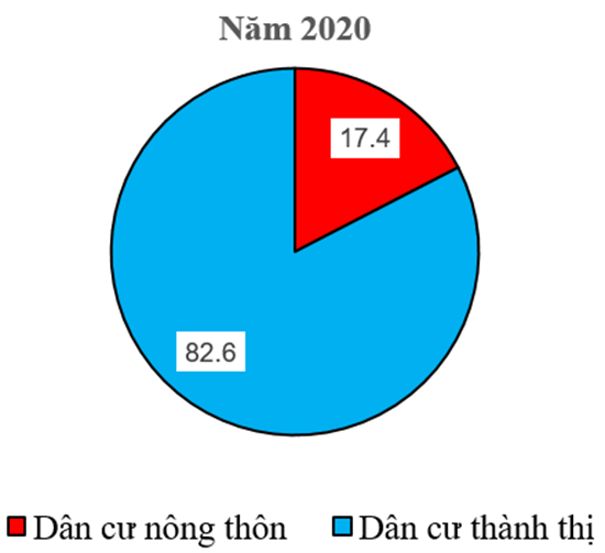 Bài tập 4 trang 47 SBT Địa lí 7: Tỉ lệ dân thành thị của Bắc Mỹ năm 2020 là 82,6%. Hãy vẽ biểu đồ thể hiện tỉ lệ dân cư đô thị và nông thôn ở Bắc Mỹ năm 2020.