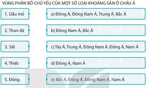 Bài tập 5 trang 20 SBT Địa lí 7: Ghép các ô bên trái với các ô bên phải sao cho phù hợp.