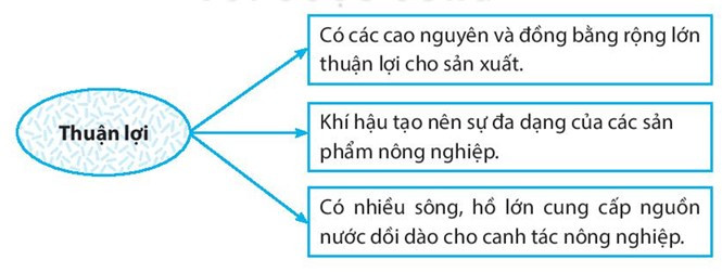 - Các khu vực cao nguyên và đồng bằng rộng lớn thuận lợi cho sinh hoạt và sản xuất. - Phần lớn diện tích là núi cao, hiểm trở gây khó khăn cho giao thông, sản xuất và đời sống. - Địa hình chia cắt mạnh nên cần chú ý chống xói mòn, sạt lở đất. |