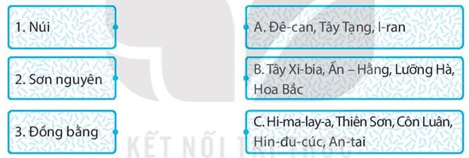 Bài tập 3 trang 19 SBT Địa lí 7: Ghép các ô ở bên trái với các ô bên ở phải sao cho phù hợp.