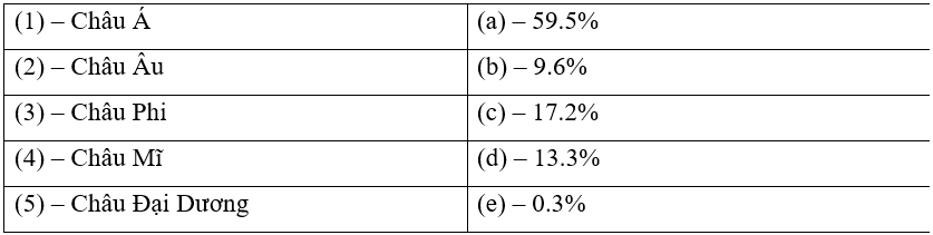 Bài tập 4 trang 25 SBT Địa lí 7: Ghép các ô ở bên trái với các ô ở bên phải sao cho phù hợp.