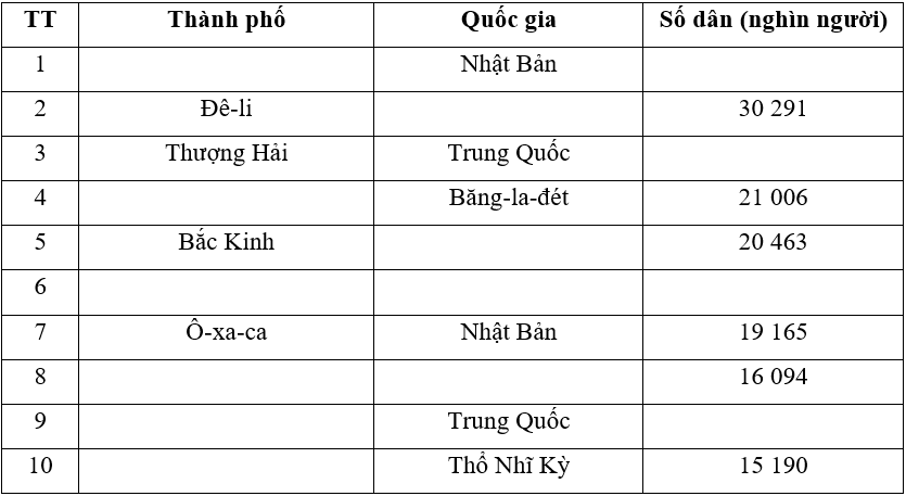 e) trang 23 SBT Địa lí 7: Các nước có nhiều đô thị trên 10 triệu dân ở châu Á là