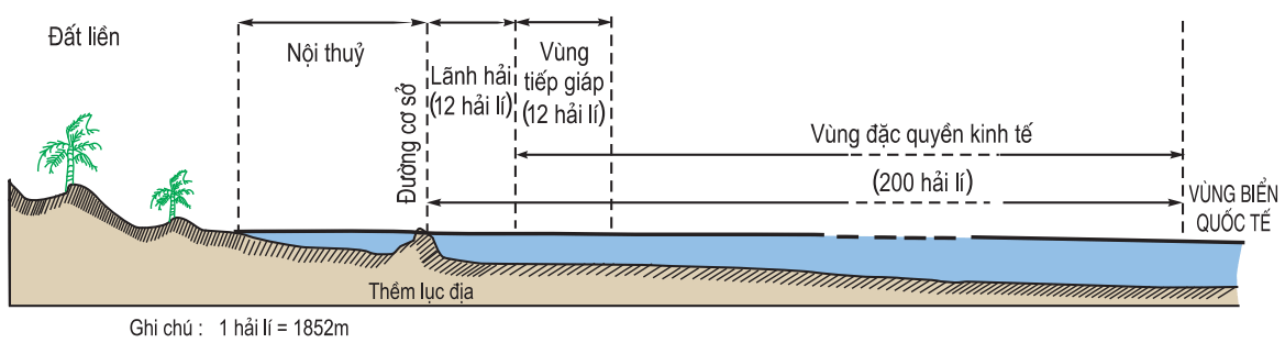 Câu 7 trang 78 SBT Địa Lí 8: Lãnh hải là vùng biển tính từ đường cơ sở ra phía biển bao nhiêu hải lí?