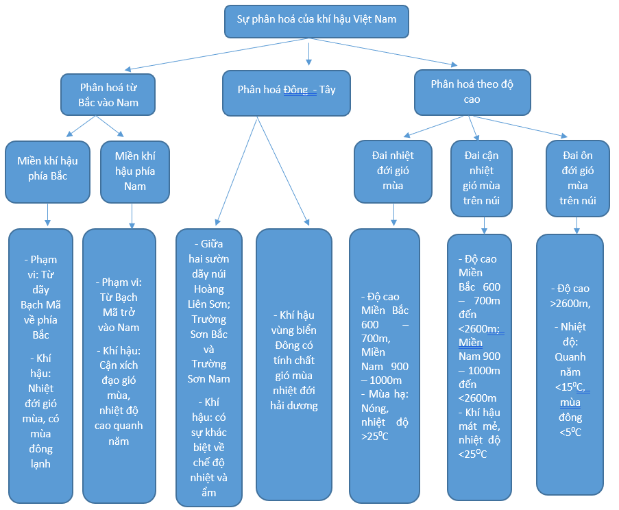 Câu 4 trang 24 SBT Địa Lí 8: Hãy hoàn thành sơ đồ dưới đây.