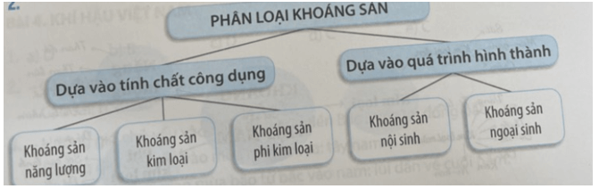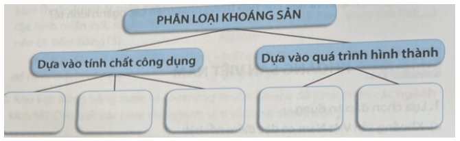 Câu 2 trang 14 SBT Địa Lí 8: Hoàn thành sơ đồ theo mẫu sau về sự phân loại khoáng sản.