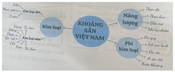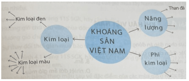 Câu 5 trang 15 SBT Địa Lí 8: Hoàn thành sơ đồ theo mẫu sau để thấy sự đa dạng của khoáng sản Việt Nam.