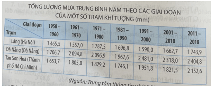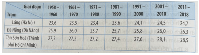 Nhận xét sự thay đổi nhiệt độ trung bình năm của ba trạm khí tượng trong thời kì 1958 – 2018