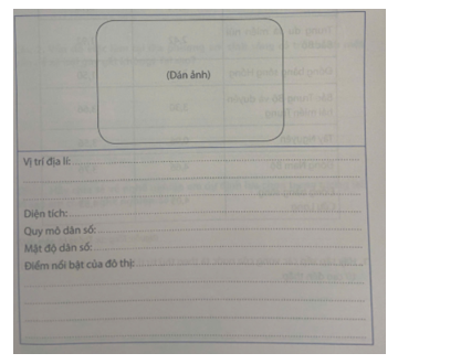 Bài tập 3. Hãy sưu tầm hình ảnh, thông tin về một đô thị tại địa phương em sinh sống và hoàn thành bảng dưới đây.