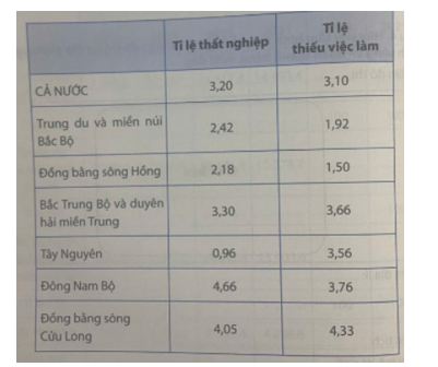 3. Chỉ ra sự khác biệt về tỉ lệ thất nghiệp và tỉ lệ thiếu việc làm giữa các vùng.