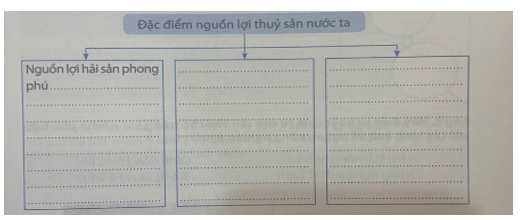 Bài tập 5. Hãy hoàn thành sơ đồ dưới đây về đặc điểm nguồn lợi thuỷ sản nước ta.