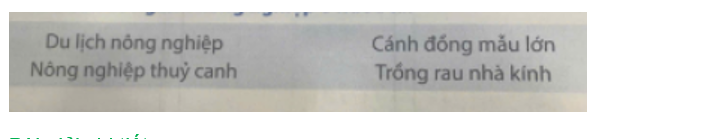 Bài tập 9. Hãy điền từ hoặc cụm từ cho sẵn vào chỗ trống (......) cho phù hợp với các hình ảnh về ngành nông nghiệp ở nước ta.