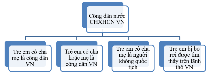 A. Trẻ em được sinh ra trong hoặc ngoài lãnh thổ Việt Nam mà khi sinh ra có cha hoặc mẹ là công dân Việt Nam còn người kia là người không quốc tịch.
