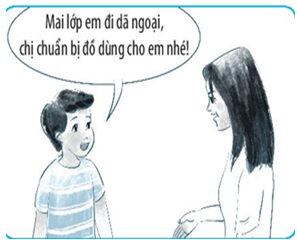 1/ Ngày mai, lớp của Hoàng đi dã ngoại nhưng bạn không tự chuẩn bị mà nhờ chị gái chuẩn bị đồ dùng mang đi.