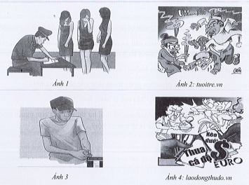 Bài 1 trang 58 SBT GDCD 7: Em hãy quan sát các hình ảnh dưới đây và cho biết hành vi nào của các chủ thể vi phạm quy định của pháp luật về phòng, chống tệ nạn xã hội?