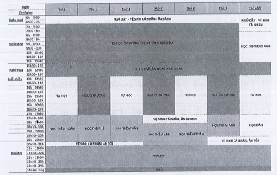 + Lập kế hoạch học tập một cách khoa học, hợp lí; cân đối giữa thời gian học tập và vui chơi, giải trí,…