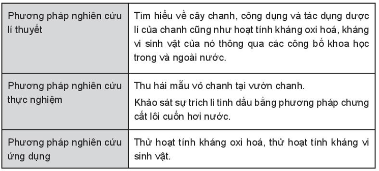 - Bước 2: Nêu giả thuyết khoa học: Tinh dầu vỏ chanh có hoạt tính kháng oxi hóa và hoạt tính kháng khuẩn.