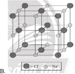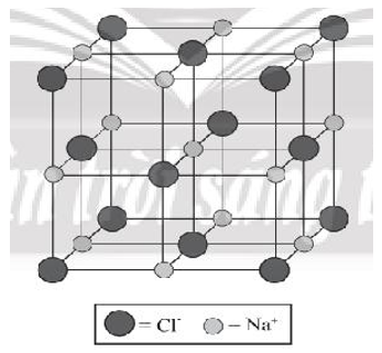 Trong tinh thể sodium chloride, mỗi ion sodium được bao quanh bởi 6 ion chloride gần nhất và mỗi ion chloride cũng được bao quanh bởi 6 ion sodium gần nhất.