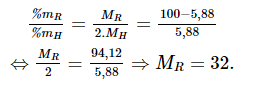 Oxide cao nhất của nguyên tố R là RO3. Công thức hợp chất khí với hydrogen của R là RH2. Trong hợp chất khí của R với hydrogen có 5,88% hydrogen về khối lượng nên: