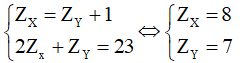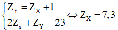 Trường hợp 3: ZY = ZX + 32, thay vào (1) được ZX = 13 suy ra ZY = 45.