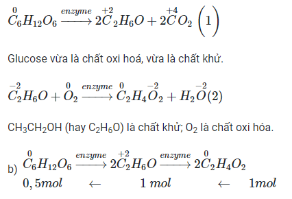 b) Tính lượng glucose cần dùng để thu được 1 lít acetic acid 1M. Giả sử hiệu suất của cả quá trình là 50%.