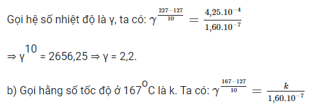a) Hãy tính hệ số nhiệt độ của phản ứng trên.